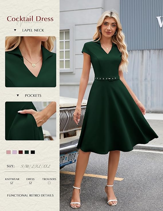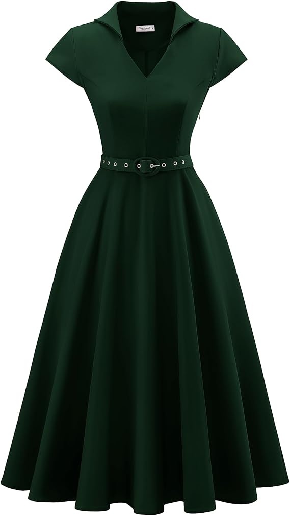 Wedtrend 1950’s Vintage Dresses for Women Cocktail Dress with Belt Modest Church Dress Wedding Guest Dresses with Pockets